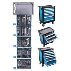 Gereedschapswagen DRAFT-Line met gereedschap assortiment 138PCS 7 laden blauw